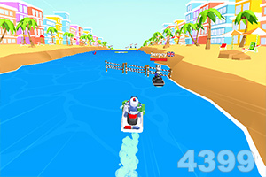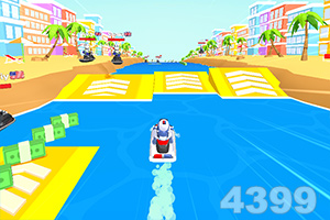 游戏内你是一个驾驶技术高超的水警,你需要驾驶着摩托艇追捕逃跑的罪犯,利用好各种加速道具躲避各种障碍并逮捕罪犯,快来试试吧。